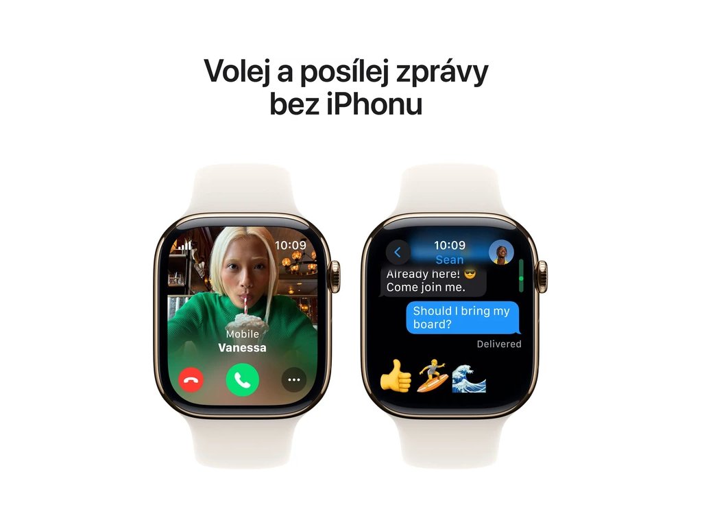 Vůbec poprvé si můžeš vybrat ze tří variant leštěného leteckého titanu, který je krásný, zrcadlově lesklý a hodně vydrží. A díky jeho vynikajícímu poměru pevnosti k hmotnosti jsou Series 10 skoro o 20 % lehčí než Series 9 v provedení z nerezové oceli. Ale pořád mimořádně odolné.