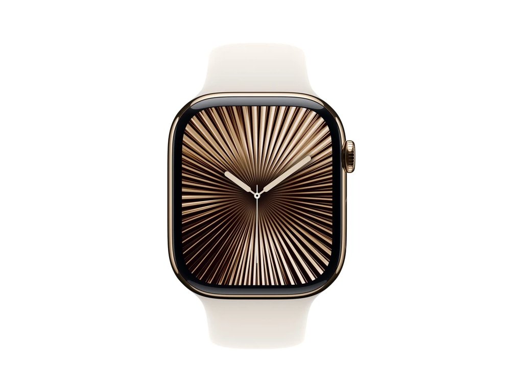 Apple Watch Series 10 Cellular 46mm Zlatý titan s hvězdně bílým sportovním řemínkem S/M