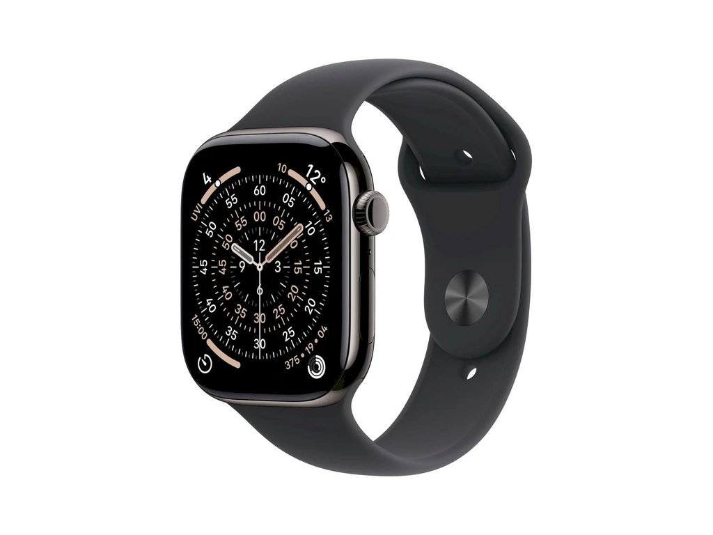 Apple Watch Series 11 Cellular (42mm) Břidlicově šedý titan s černým sportovním řemínkem S/M