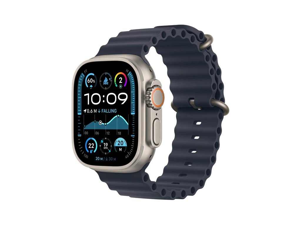 Apple Watch Ultra 2 49mm Přírodní titan s námořnicky modrým oceánským řemínkem