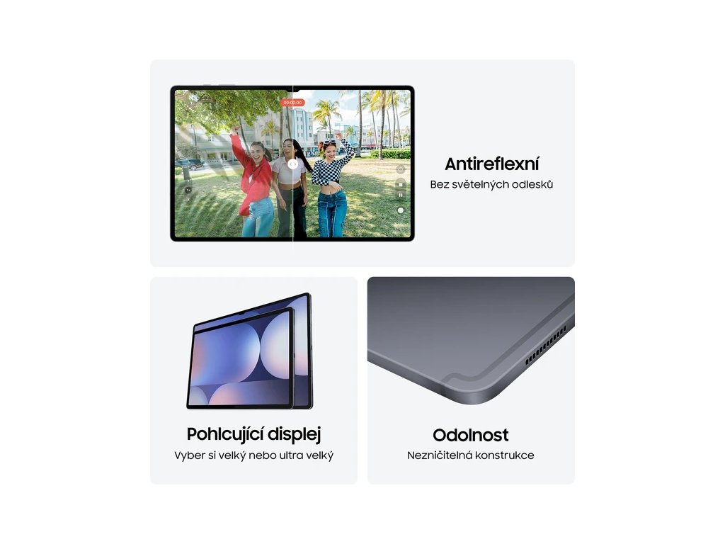 Vyberte si mezi dvěma barevnými provedeními šedomodrá a stříbrná, přičemž obě přicházejí s odpovídajícím perem S Pen a jsou dostupné jak v rámci modelu Tab S10+, tak i masivního Tab S10 Ultra.